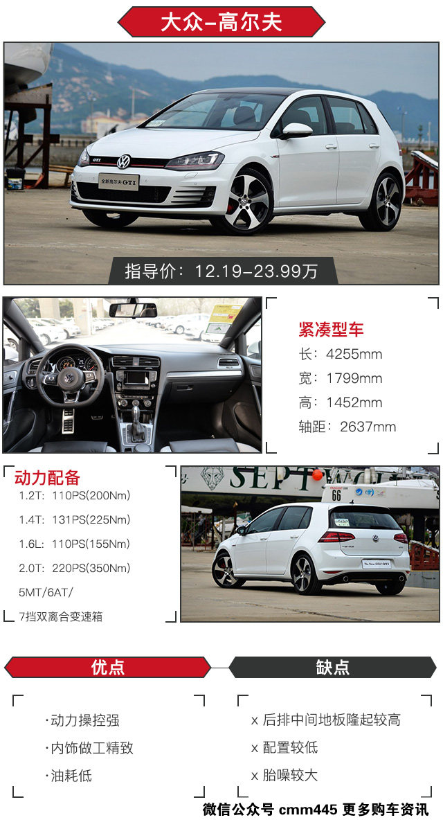 德系车一直在动力性能这方面做的相当出色,遗憾的是国内大部分消费者都追求舒适性大空间,只有小部分才追求性能,所以造就了中国汽车市场中性能车选择并不多。高尔夫动力性能表现在同级别中是出类拔萃,1.4T高功率车型的加速成绩要比之前提升不少,两厢车型也能满足消费者对小钢炮的迷恋。