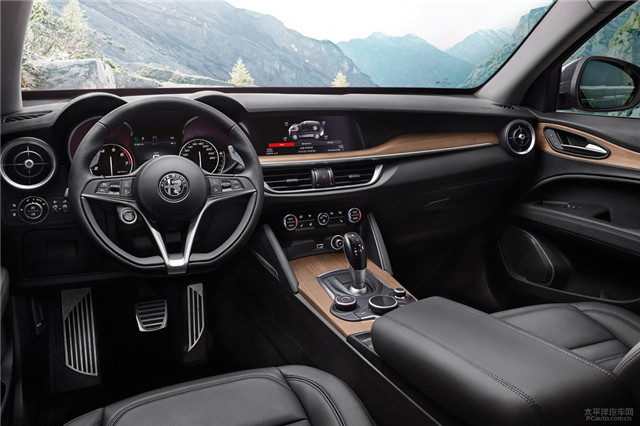 Stelvio的高性能版此前已经在洛杉矶车展正式发布,这次带来的是其普通版车型。和Giulia相似的新家族前脸被用在一台SUV上非但没有显得不协调,反而给一向沉闷的SUV车型带来新的活力。尾灯和前大灯交相辉映,大大的双出排气口时刻提醒着路人阿尔法罗密欧的跑车血统。