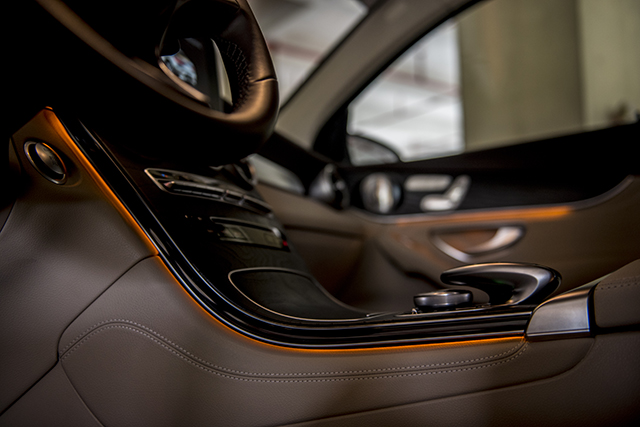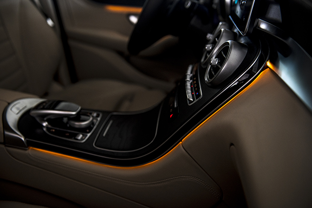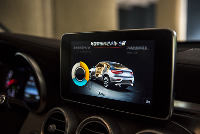 现在奔驰的这一套家族式内饰设计普及面非常广,虽然说GLC还没达到S级的奢华,毕竟价格摆在那,但是一坐进车内,大量哑光银装饰映入眼帘,工业金属风扑面而来。如果你觉得冰冷的话,不用急,将内饰氛围灯调节为暖色系的橘色,瞬间找到了家的温暖。