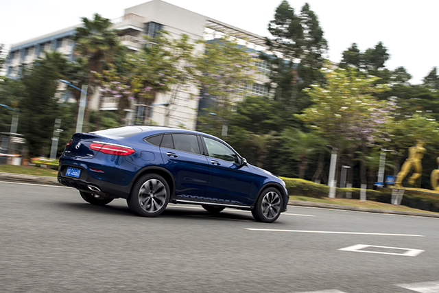 这台GLC 300 4MATIC 轿跑SUV的驾乘感受与普通版的GLC有较大差别,悬挂调校偏向于运动化,再加上20英寸的轮毂,较薄的胎壁,真的很轿跑,除了坐姿之外,没有什么SUV的感觉,涡轮介入后动力表现相当给力,即使是长期使用ECO模式也能够满足日常的超车需求,如果你想要激情,就试试SPORT+模式吧,油门非常灵敏,轻轻点油门就有很大反应,同时发动机会保持在2000转以上,及时提供动力响应,总体而言,这辆轿跑SUV还是很容易上手的。