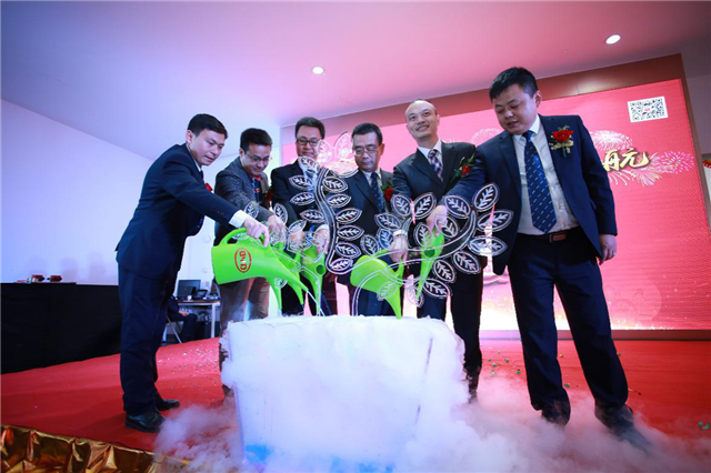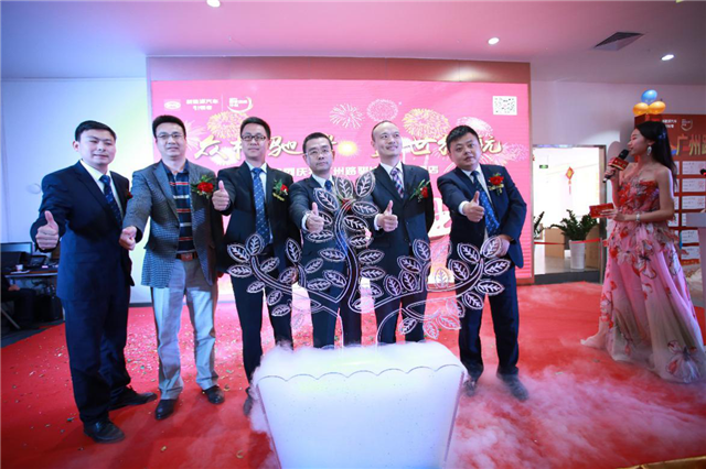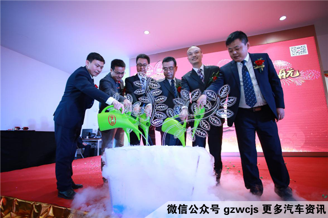 众领导上台共同为广州路骐比亚迪天河店开业盛典启动能量树