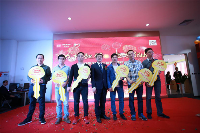 荣幸邀请到广州路骐比亚迪天河店总经理龚伟先生为车主代表颁发新车钥匙