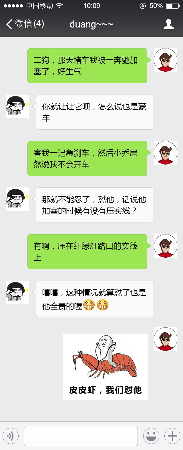 教授写这篇文章,其实是有感而发的,话说那天我载着一位不会开车的朋友去吃饭,很不幸地遇上堵车了,本来饿着肚子堵车已经够倒霉的了,眼看我这条车道开始有点顺了,居然还被隔壁的奔驰车强行加塞。我一时气愤,降下车窗就是一顿骂,就像这样。