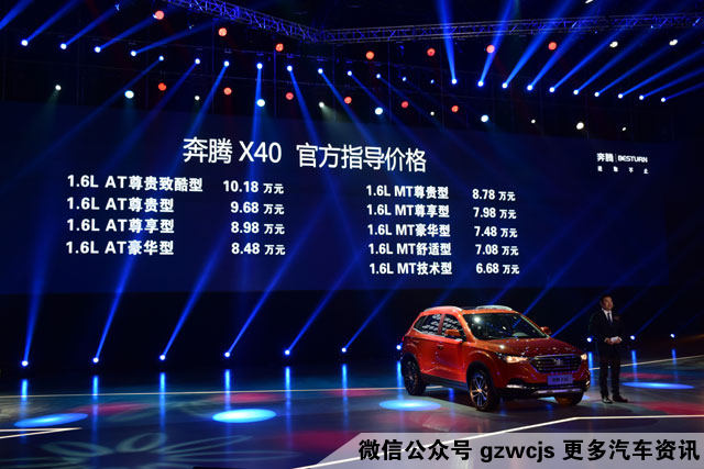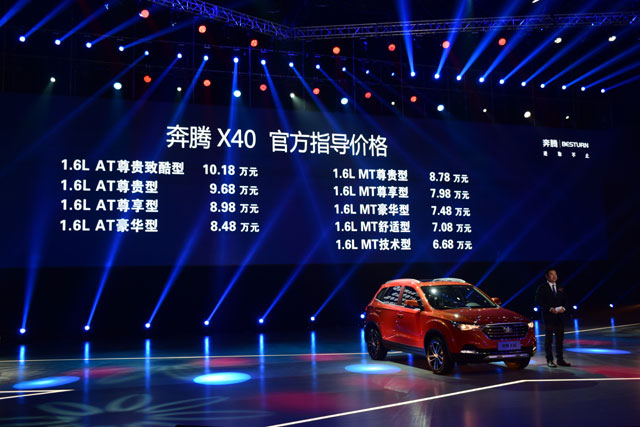 奔腾X40 1.6AT尊享型的价格是8.98万元;