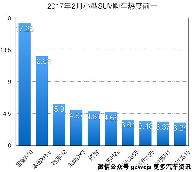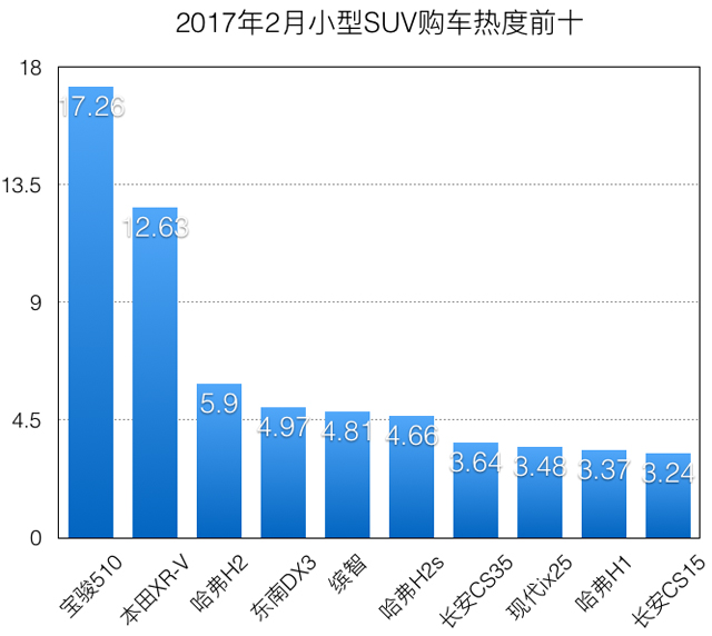 虽然在小型SUV的销量排行榜上,依旧会是被哈弗家族的H2占据冠军,但同为自主品牌,宝骏利用“自带爆款”的招数,在宝骏510上市后,“购车热度”直接打压同级别的长安CS35,瑞风S3和哈弗H2,甚至超过了合资品牌。
