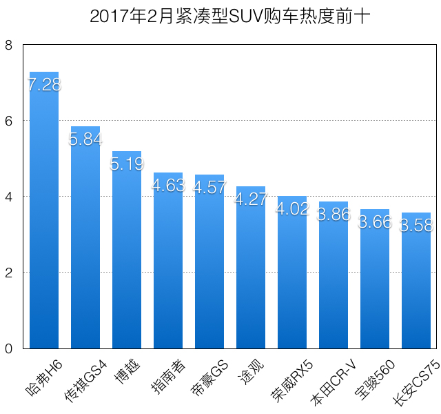看完上面三款大战,好像非常激烈,反过来看紧凑型SUV战场,不温不火,毕竟没什么新车型上市,像长安CS75上市了尚酷版,像传祺GS4的2017款更新了变速箱为6AT,宝骏560上市律动版,各种品牌守着自己的本营,丰富自己的配置产品线。