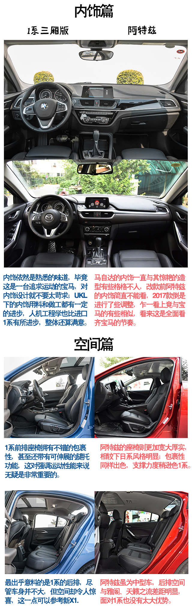 但我们也不得不承认一个很现实的情况,1系车头的“蓝天白云”logo要拉回不少分。单论设计,阿特兹占优,但真到了要掏钱的时候,还真不少说,接着往下看。