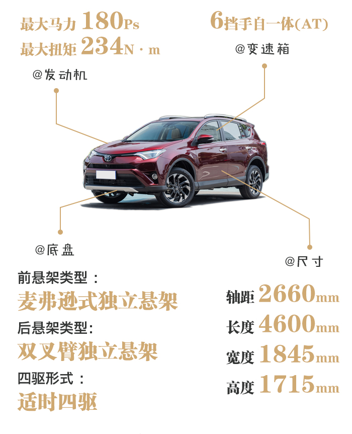 GLA 200 动感型搭载的是1.6T的发动机,最大马力156Ps,最大扭矩250N·m,搭配7挡双离合的变速箱;Rav4 2.5L 自动四驱尊贵版则搭载2.5L自然吸气发动机,最大马力180Ps,最大扭矩234N·m,搭配6AT的变速箱。