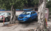 还有这种有障碍物的停车位,绝对适合我这种小车停进去。