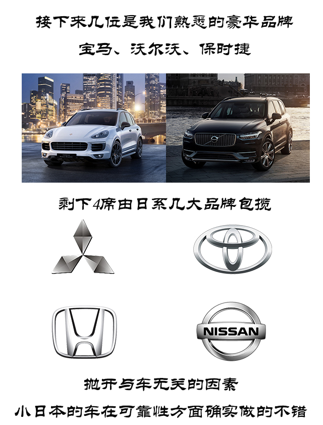 3.质量口碑位于前列的日系占多数