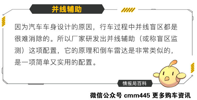 其实这项配置并不是高价车型才有的,新款的轩逸、领动、国产SUV的高配车型很多都带有这项配置,如果大家害怕这一盲区的话,可以选择购买带并线辅助功能的车型。