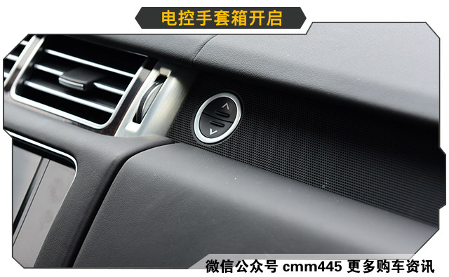 首先我们看看揽胜的手套箱↑↑↑,是不是发现没有那个手套箱扣手了?没错,揽胜使用的是按键式电控手套箱开启,可别小看这个开关,要知道作为有逼格的百万级豪车,还要手动去抠开手套箱可是很没有逼格的,基本上高价位的车型都使用电控开启,这也算是豪车与众不同的一个地方吧。