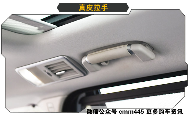 这个不算配置,不过也算是炫耀的一个小细节了,车顶拉手上都是真皮包裹,而车内更是被各种真皮、实木和哑光铝材覆盖,连按钮都是铝材做的,这些真材实料的大面积使用算不算是奢华?