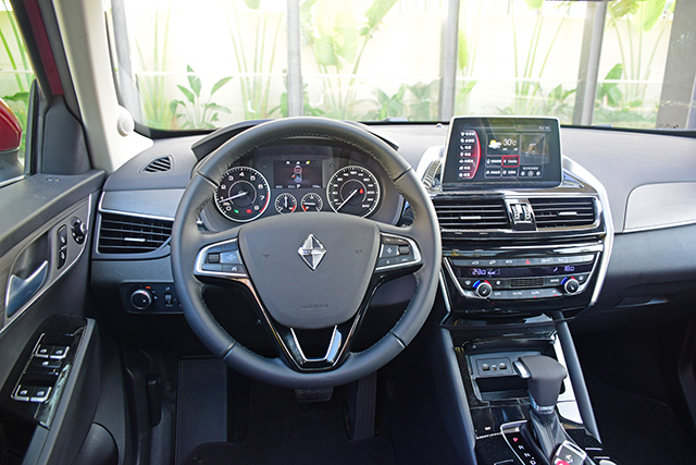 在内饰方面,宝沃BX5提供了三种配色方案:全黑内饰加红色缝线、蓝米混搭以及黑纵搭配,在用料方面上方采用了软性材质,采用了钢琴烤漆和金属拉丝的搭配,整体营造出来的高级感相当不错,但在小细节方面有待加强,譬如中控按钮的阻尼上,手感并不突出。