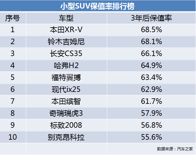 如果买到是高保值率的车型,那么开个几年,再卖出去,肯定不亏,非常划算,近期小型SUV在中国非常火热,教授收集了相关数据,来说说小型SUV保值率的排行,以供参考。