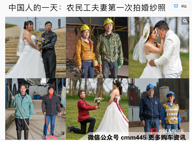 照片里的都是一群女汉子,她们在建筑工地里跟老公一起顶着烈日,为生活奋斗。她们大多数在结婚时候只是简单摆了几桌酒,拍结婚照是想都没想过的事情,太过奢侈了。而这次拍婚纱照,则是工地经理组织的免费活动。