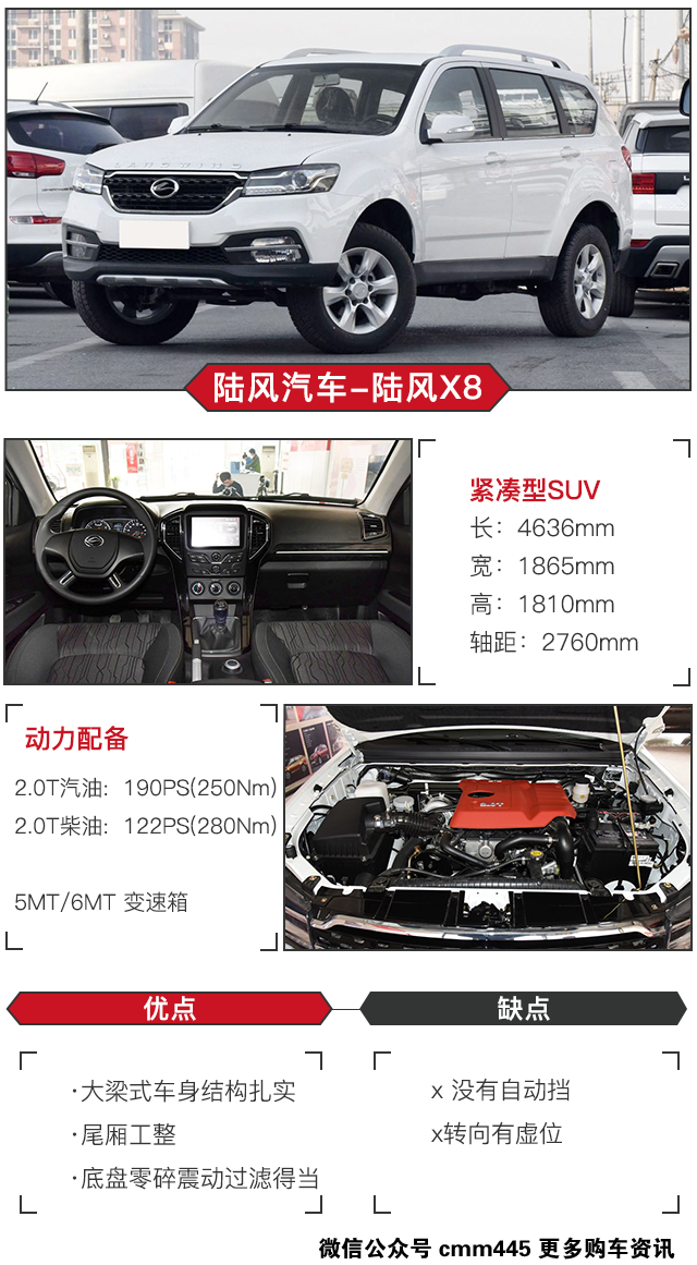 陆风X8外观偏向中庸,不过内饰的功能性和档次感都有提升。它同样拥有非承载式车身,配备分时四驱系统,低速四驱可以将扭矩放大两倍,后桥装备纯机械结构的伊顿差速锁,通过性更加出色。再加上它拥有不错的离地间隙/接近角/离去角,行走跋涉于山水之间底气十足。