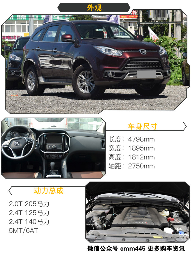 虽然是比较冷门的SUV,但是实力可不可小觑,采用带大梁的非承载式车身结构,博格华纳适时四驱+伊顿后差速锁让它有着出色的通过性。2.0T发动机最大功率可达205马力,搭配来自ZF的六速手自一体变速器,动力充足,换挡的速度和平顺性都是相当不错的。