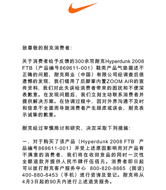 其中最备受争议的莫过于“耐克气垫门事件”,耐克谎称在其售价高昂的鞋类产品中放置看家技术ZOOM AIR气垫,事发东窗后作出如下回应。