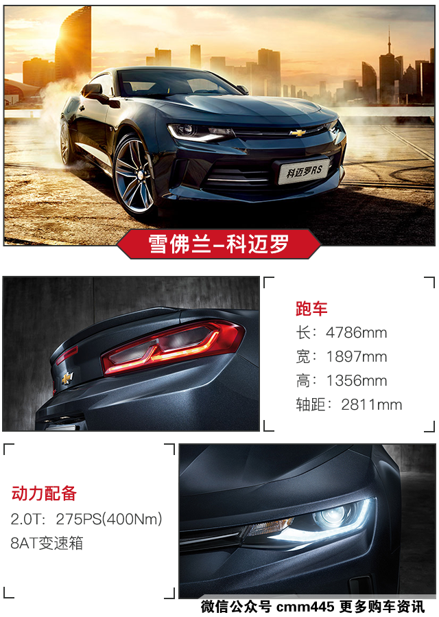说到科迈罗,相信不少国内消费者是通过《变形金刚》认识到它的。新一代科迈罗依旧有熟悉的那抹黄,但车身尺寸与老款相比整整“瘦”了一圈,长、宽、高分别4786x1897x1356mm,轴距也减到了2811mm,看上就像是一个没有吃蛋白粉的肌肉男。但却增添了精致感和未来感,一位来自未来的野兽来泡你,让女生欲罢不能啊。