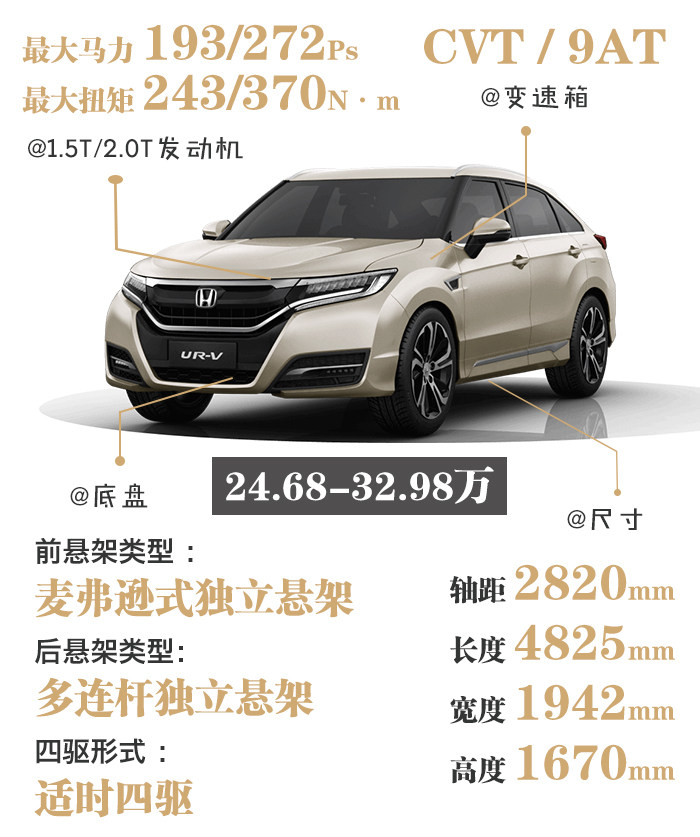而就在前几天,东风本田又上市了一款新SUV车型,人称“冠道姐妹车”的UR-V,售价24.68-32.98万元,而且这次UR-V的上市,一次性将1.5T和2.0T车型都发放出来,让消费者有了多一种选择。
