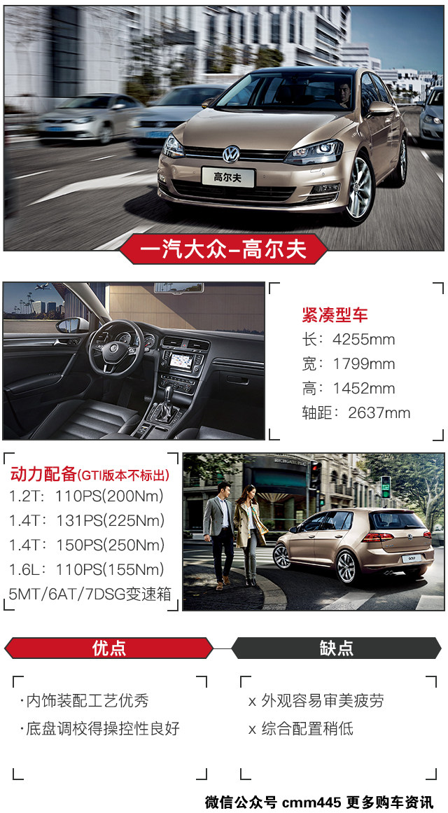 高尔夫可以说是大众家族非常经典而且消费热度一直保持在一个较高水平的功勋车型之一。车身尺寸上尽管在同级别中不算具有优势,但胜在空间布局合理,利用度高,后排所给予的乘坐舒适度还是相对出色,加之大众一贯扎实的底盘调校功力,使得高尔夫也是一款非常具有驾驶乐趣的两厢紧凑型轿车;家用层面280TSI的1.4T高功率版本(280TSI)已经够用了,高性能的GTI可不是一般平头老百姓能玩得起的。