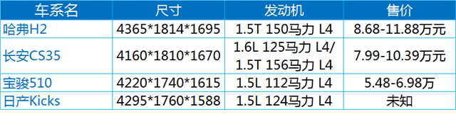 但是,仅仅把同级别的合资SUV作为对手,对于增加销量来说是十分狭隘的,留意销量榜就会发现,在A0级SUV领域里,卖得最好的是自主品牌的哈弗H2、长安CS35、宝骏510等车,而且这个市场的容量相对紧凑型轿车和SUV来说真的不算大,销量最高的H2月销量也仅仅是2万出头,所以Kicks销量想要突破的话,必须要和自主品牌抢市场。