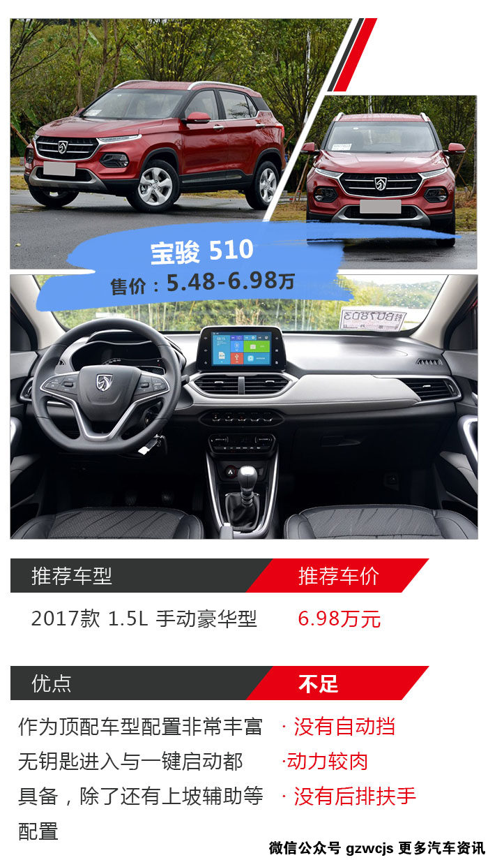 宝骏510作为宝骏全新的小型SUV,它的内饰则延续了全新的造型设计。大尺寸的悬浮式中控大屏配合出色的用料与做工,整体呈现出的质感真的不像一辆不到7万块的SUV。相比于外观与内饰的整体与对手拉开一些差距之外,宝骏510的动力只能算一般了。1.5L发动机其实还好,但只有手动变速箱则拉低了其整体的市场预期。