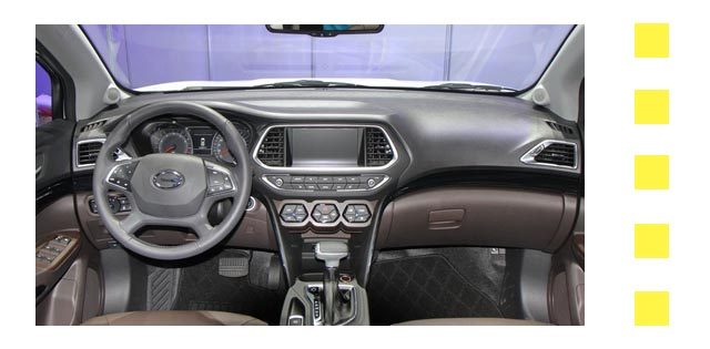 传祺GS4的内饰设计跟韩系车的风格很像,中控屏被多边形饰条包围,按键被紧凑地横向安置在屏幕的下方。空调按钮同样采用了多边形的设计,给人的感官相当特别。除此以外,传祺GS4并没有太多让人记忆犹新的设计。在内饰材质上,以硬质所料居多。