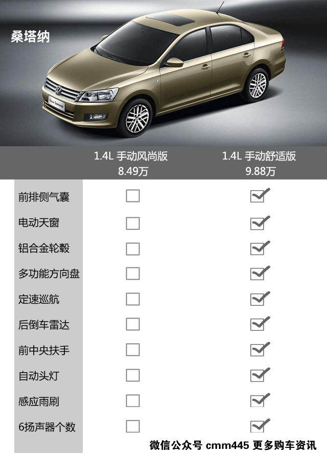 仅在价格上桑塔纳就贵出了5000元,但在配置上捷达相比之下还多出了外后视镜加热、遮阳板化妆镜、CD机等功能。而桑塔纳次配级舒适版与入门级相比,功能配置方面升级了好几个档次,只是代价就是得多花1万多块钱。