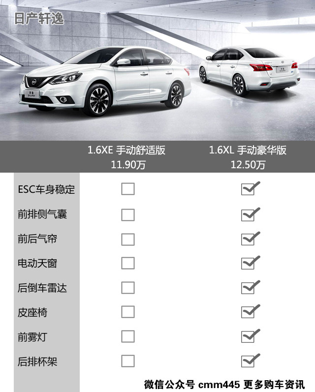 不过上到次配级情况就好了很多,价格差距仅6千元多出了ESC、前侧气囊/前后头部气帘、电动天窗、倒车雷达、皮座椅等实用配置。所以各位如果计划购买轩逸,关注重点可以往上挪一挪,这6000元真心出的值!