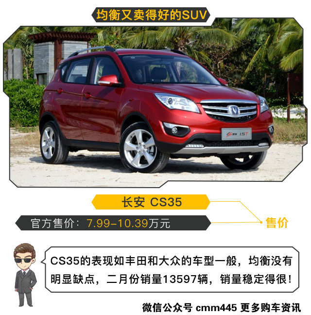 而行驶起来,它的悬架对于震动的过滤效果比较出色,综合下来长安CS35的性能其实比较均衡的所以车主们的评价并不差,前段时间上市的2017款车型也把老旧的内饰换成时尚前卫的款式了,所以没有明显短板是这款车的长处,它的持续热销应该和多年积累下来的口碑息息相关!