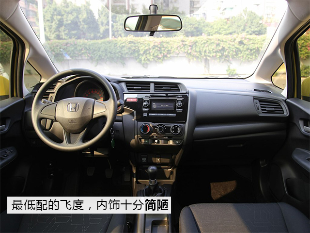 进到车厢里,低配车的特点就开始露出来了,首先多功能方向盘是没有、中控彩色屏也没有、座椅是织物的,再有一个比较明显的就是变速棍上面是有数字的(手动挡)。