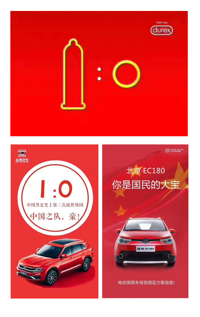 “红色”热潮还未褪尽,在昨晚的世界杯预选赛中,中国破天荒以1:0的成绩干掉了韩国,再一次引爆全国。及时跟进的还是杜蕾斯!!以一个极为含蓄的方式表达了庆祝。
