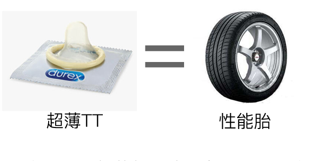 热感套套一般还会加上个超薄,不仅能够拉近爱的距离,独特的润滑剂还能增加敏感度让人难以把持。对应的轮胎当然就是赛车场上常见的热熔胎啦,高温状态下的凝胶状态能够提供极为恐怖的抓地力,但缺点就是损耗快,就像使用热感套套那样很容易就缴械投降了。