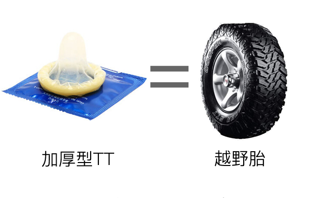 加厚的套套不仅能让爱更持久,还能多一层保护;而越野车由于要面对高强度的坑洼烂路,使用的轮胎自然也需要更厚的胎壁,也能拥有更强的抗压性。