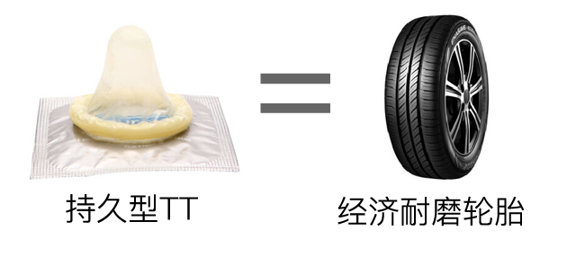 “持久”我相信是所有男人在爱的传播中追求最高的一个指标,杜蕾斯就出了这么款套套,末端含有本佐卡因来降低敏感度。对应的轮胎则是经济耐磨胎,持久力出色并且实惠便宜,也是大多数车型最常使用的类别。