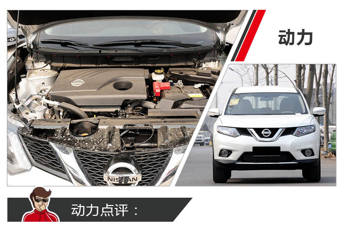 相比于德系车,目前日产的SUV阵型上除了逍客搭载了1.2T发动机之外,基本上都是自然吸气发动机,奇骏的入门车型搭载的仅是一台2.0L发动机,动力不算太出色;CVT变速箱则是很熟悉的搭配了;这套动力总成代步刚好;成熟耐操是其最大的特点。