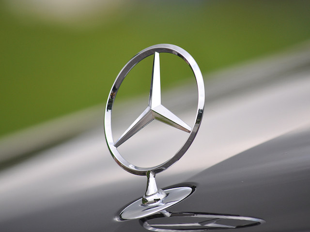 1899年3月,埃米尔·耶利内克(当时的奥地利驻匈牙利总领事)驾驶以他的小女儿梅赛德斯(Mercedes,意为幸福)命名的戴姆斯汽车,在法国“尼斯之旅”汽车大赛上一举夺魁。他建议戴姆斯公司生产的汽车都用“梅赛德斯”命名,戴姆勒欣然同意。经过数次改动,“Mercedes”与三叉星这两个标志合成了一个新的商标:圆圈内4颗小星环绕在1颗大星的上方,下面标注着“Mercedes”字样。