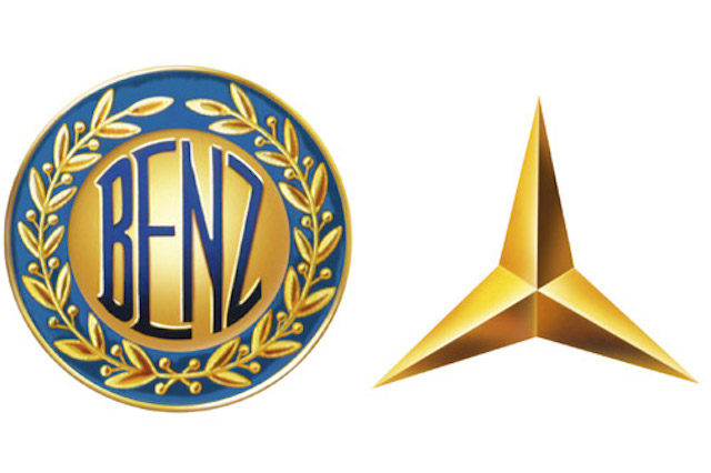 1926年,奔驰公司和戴姆勒公司合并,合并后生产的汽车被叫作“梅赛德斯-奔驰”(Mercedes-Benz),各自的商标也被结合起来重新设计成为新的标志:Benz的月桂枝围绕着三叉星,“BENZ”的字样在下面,“Mercedes”的字样在上面。