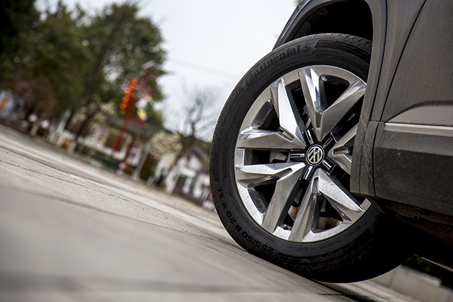 轮毂样式也是途昂的一个小亮点,高配车型的20英寸抛光处理轮毂,造型设计复杂,线条锋利,与车身的设计相互呼应,不过有一点需要注意,轮毂的辐条有小幅度的外抛,平时停车的时候容易刮到马路牙子,需要多加留意。