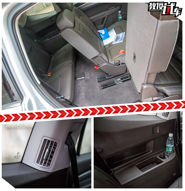 第三排座椅除了空间足够大之外,还拥有很多人性化的配置,首先是进入第三排操作简单且方便,放倒第二排的把手是双向开启的,无论是进出都能轻易将第二排放倒,第三排座椅两侧都设置有储物空间和空调出风口,左侧还有一个12V点烟器电源,堪称“黄金第三排”。