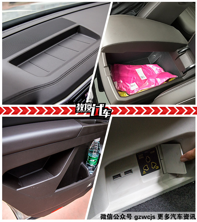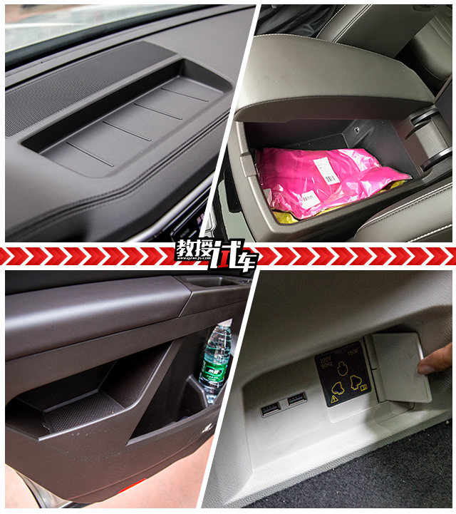 只有一个“黄金第三排”肯定是不够的,途昂在其它地方也诠释了什么是“大”,中控台上方有一个长条形的开放式储物盒,非常适合放手机钱包。中央扶手箱非常巨大,盖板支持左右分别打开,并可以分段式开启,当做中央扶手用。后车门门板的储物格分区很特别,比常规的多出一个区域,非常实用。第二排空调出风口下方接近地台处有两个USB充电口,高配车型还有一个220V的三孔电源插口,支持最大功率150W。