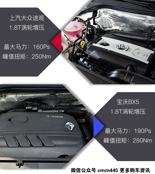 1.8T的涡轮增压发动机是目前紧凑型SUV里比较受到主机厂欢迎的类型,特别是大众品牌沿用1.8T的动力也有着相当长的一段历史,但如今遇上同样采用1.8T的宝沃BX5,途观的1.8T则显得有些不够看了。