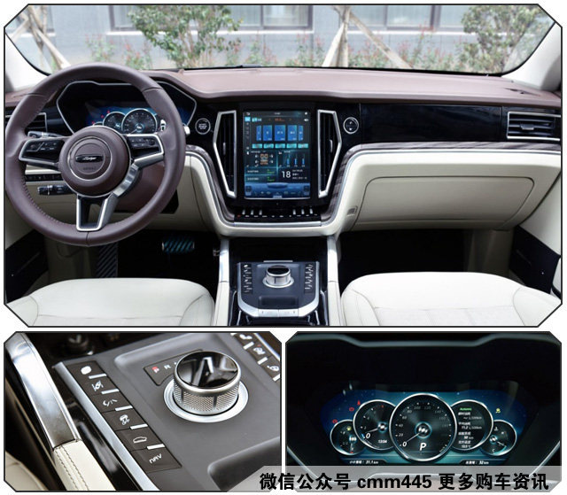 进入到车内,你就会发现它的原创性就没有那么强了!首先方向盘的样式神似保时捷,旋钮式的挡把以及按键布和路虎的比较相似。