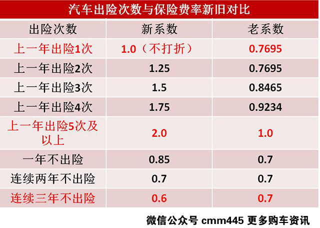 没改革之前,出险次数对新一年的保费影响较小。新政策之后出险次数对保险费的影响非常大!一起来看一下图表更加一目明了。