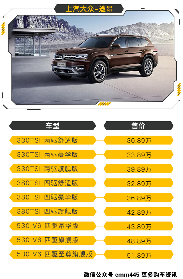 结语:从定价上看,上汽大众希望途昂走量的意图比较明显,而且全系的配置不低,体现出比较大的市场诚意,上汽大众途昂作为合资非豪华品牌中大型SUV,目前在国内汽车市场尚处于独一份儿,产品力没问题,至于最终的市场表现如何,就看国人对于大众品牌的信仰程度有多高了。