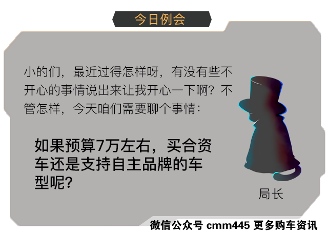 小一一说得也对,自主车的质量每年一进步,如今的车子已经不像以前那么容易坏,那么这辆车只要在换车前不出大问题就算是完成任务了。而且,自主车拥有更好的性价比,尺寸至少尺寸上达到紧凑级,空间、配置方面也都非常具有竞争力。