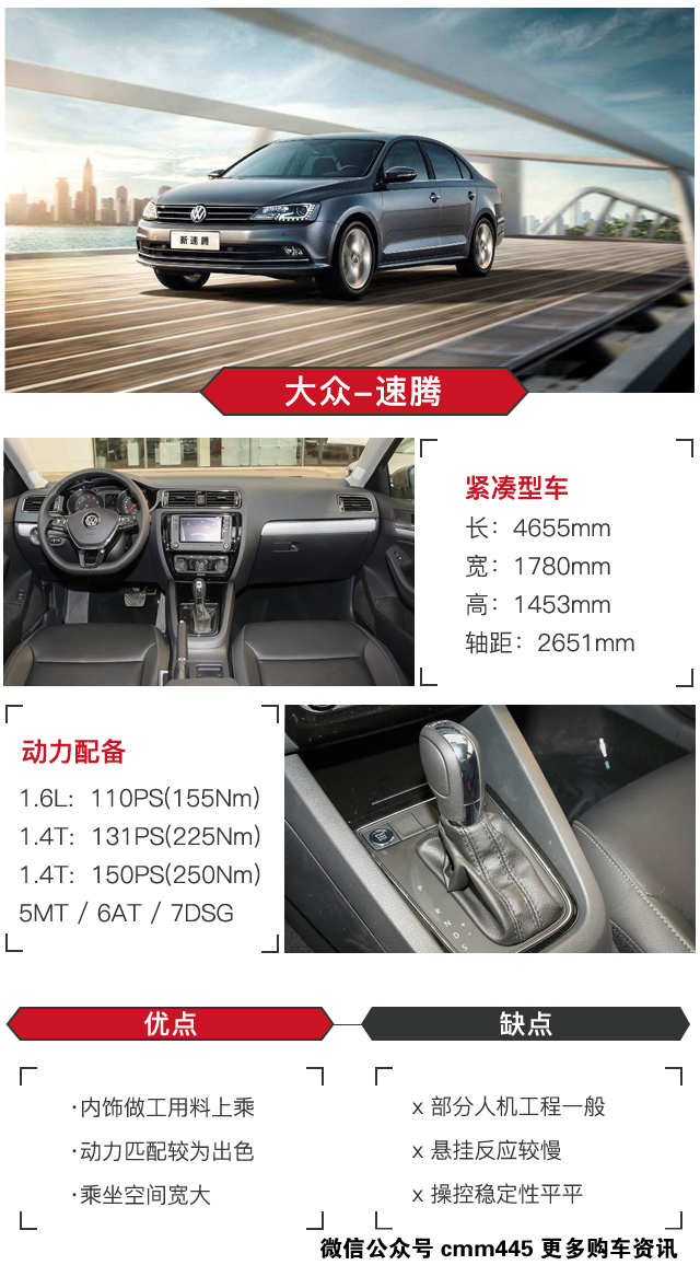 除了速腾偏家用外,其他三款车型都具备运动风格。这四款车型的选择上,追求工艺质感可以多考虑速腾与威朗;追求性价比以及操控性倒可以考虑福克斯以及科鲁兹,当然具体怎么选还得多考量下当地的优惠情况。