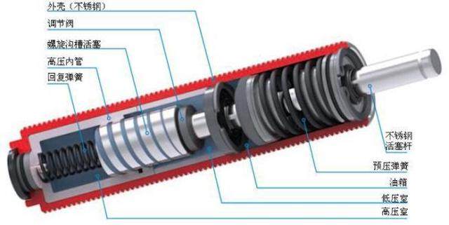 在经过不平路面时,虽然吸震弹簧可以过滤路面的震动,但弹簧自身还会有往复运动,而减震器就是用来抑制这种弹簧跳跃的。减震器太软,车身就会上下跳跃,减震器太硬就会带来太大的阻力,妨碍弹簧正常工作。